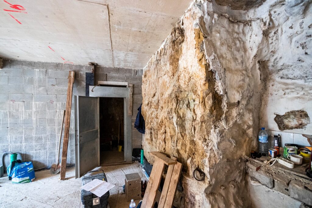 The rocheous wall on which the house stands has been integrated directly into the living space as a feature. A truly brilliant natural element, with an exciting texture that enhances the interior.